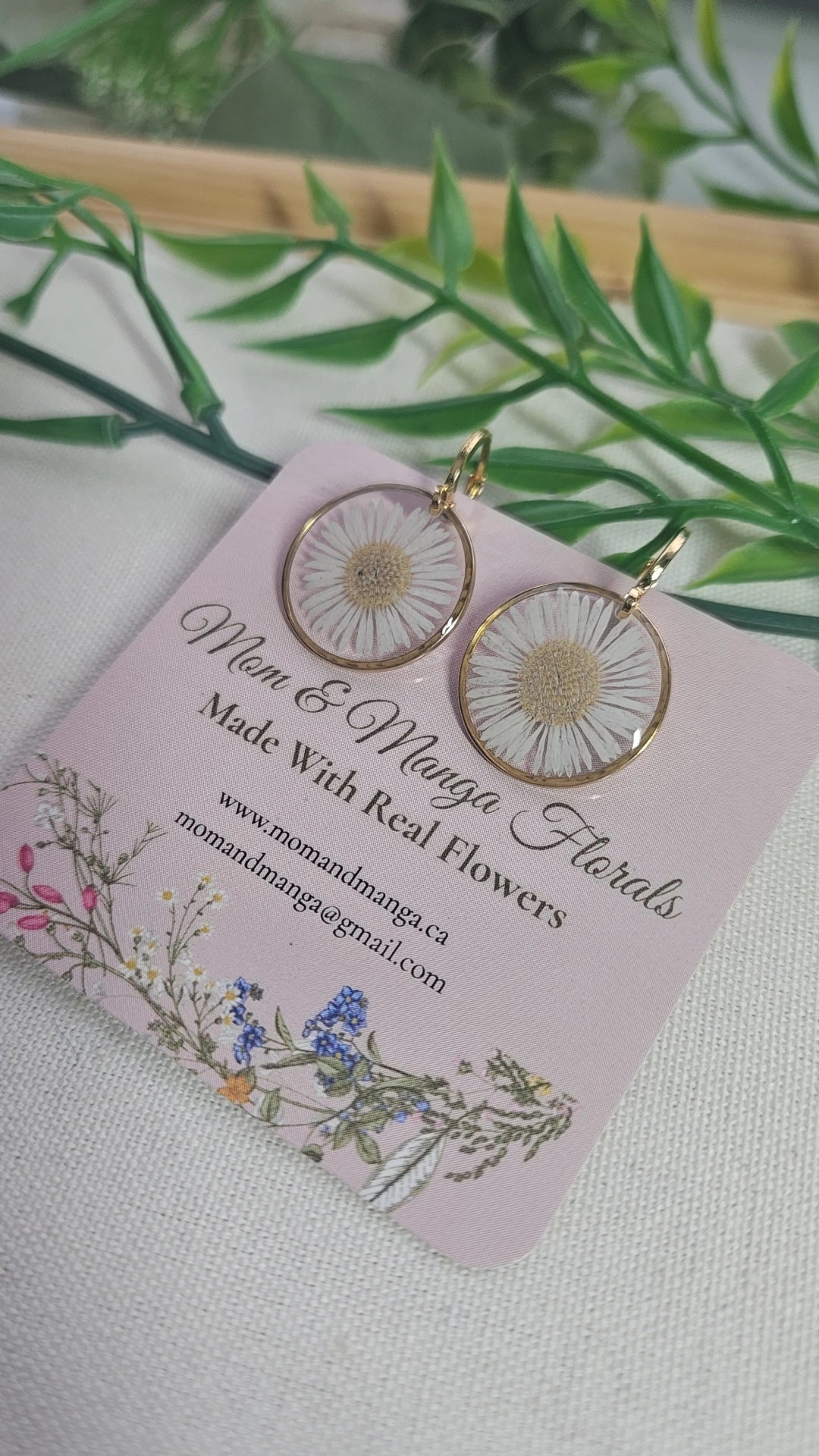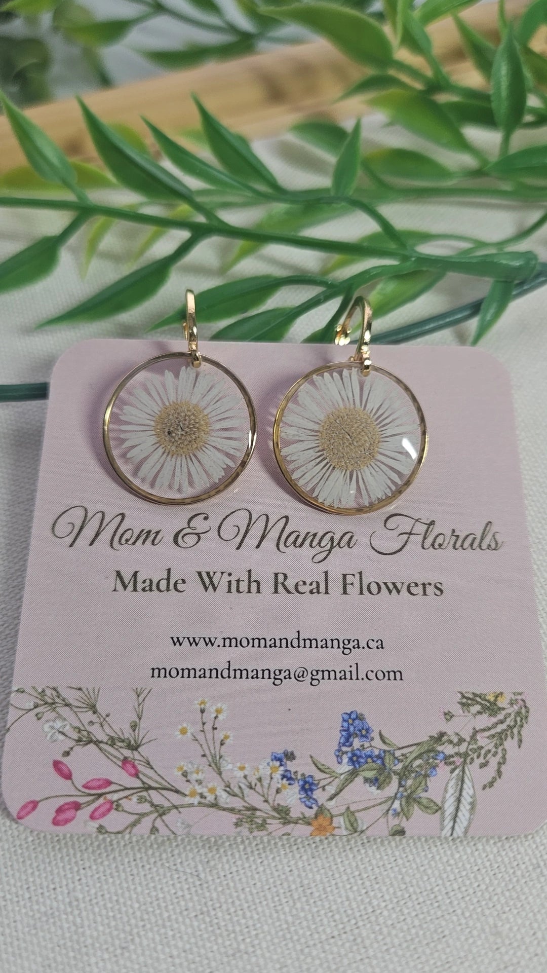 Beautifully hand pressed flowers, grown right in Niagara. These earrings feature Asters.