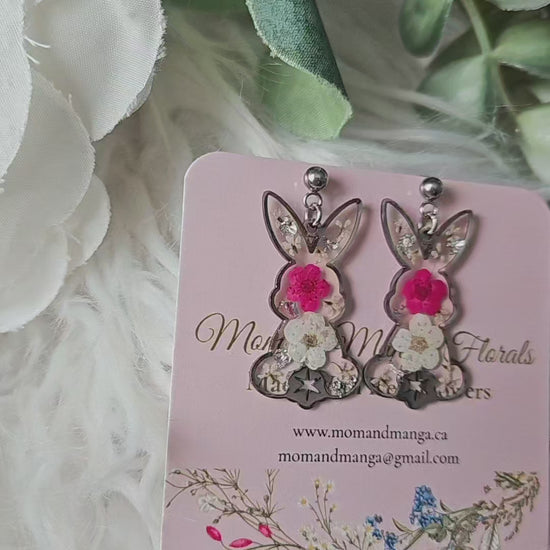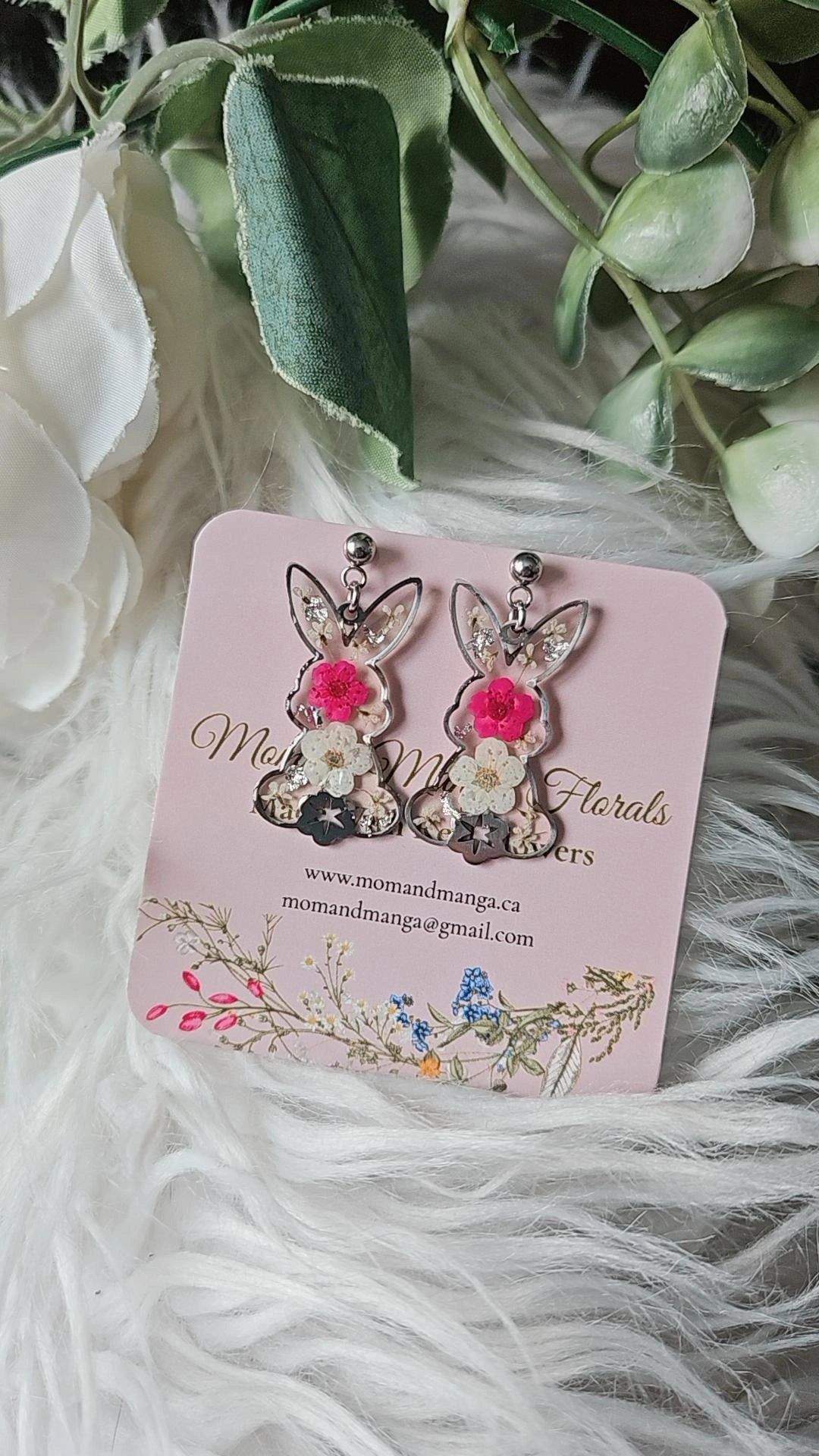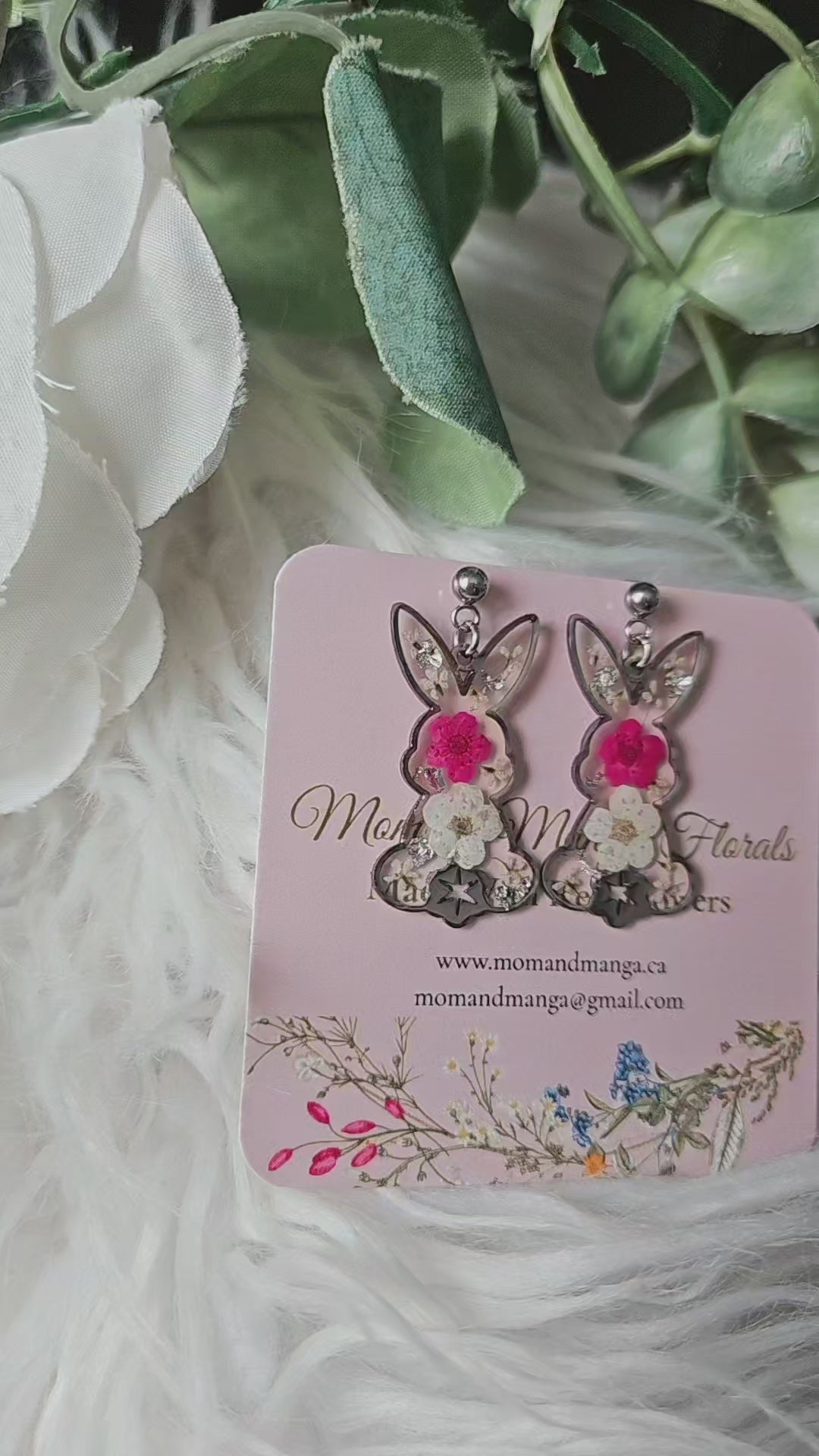 Adorable little bunny bezels filled with sweet alyssum, queen annes lace and silver leaf. Finished with hypoallergenic stainless steel studs. Perfect for welcoming spring, these are incredibly lightweight and comfortable.