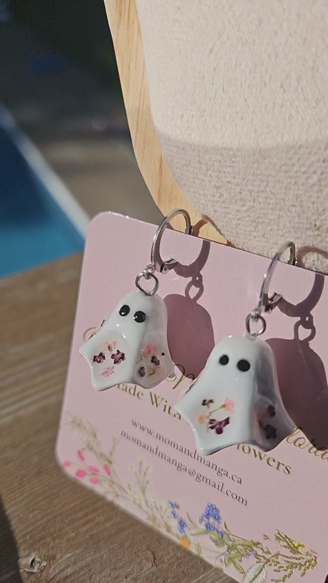 Delicate little ghosts wrapped in dainty florals — the perfect mix of spooky and sweet. Made with hypoallergenic 304 stainless steel, they are light, comfortable, and made to wear all season long.