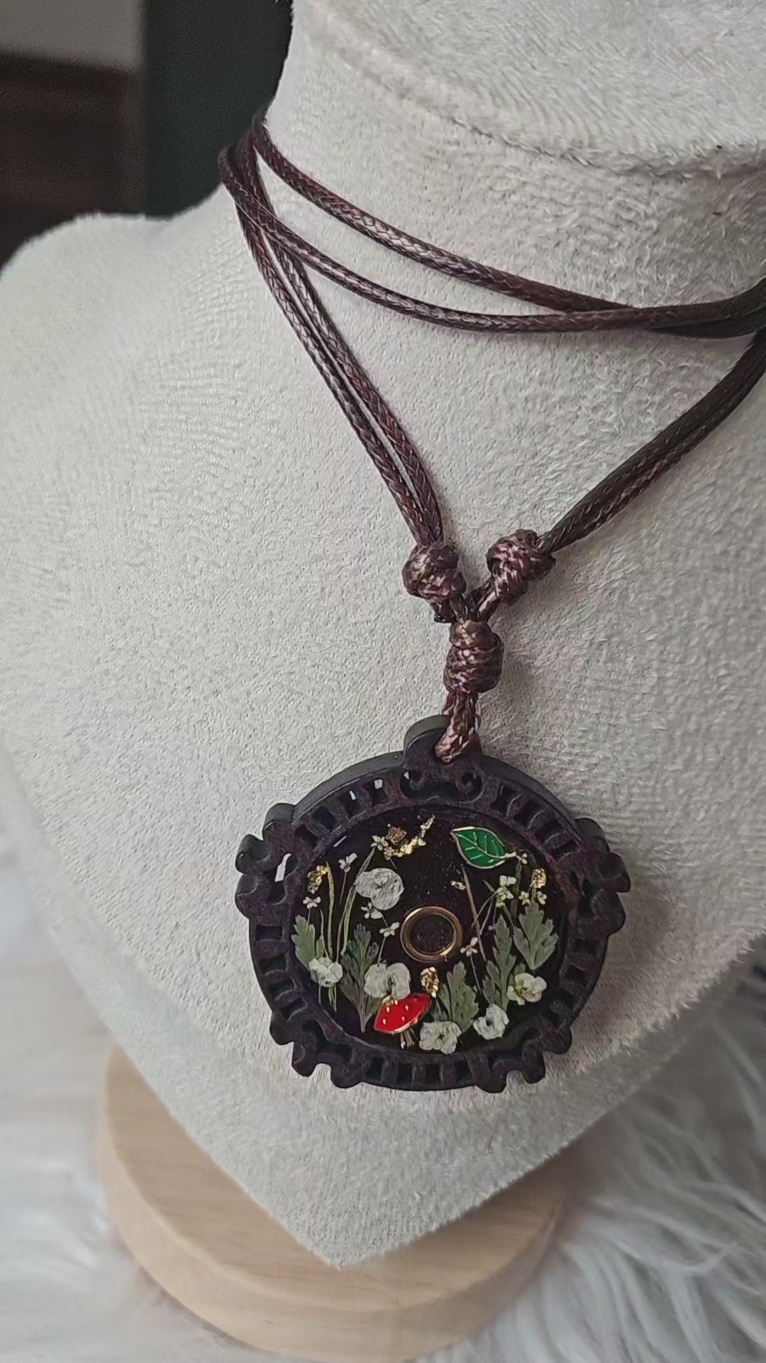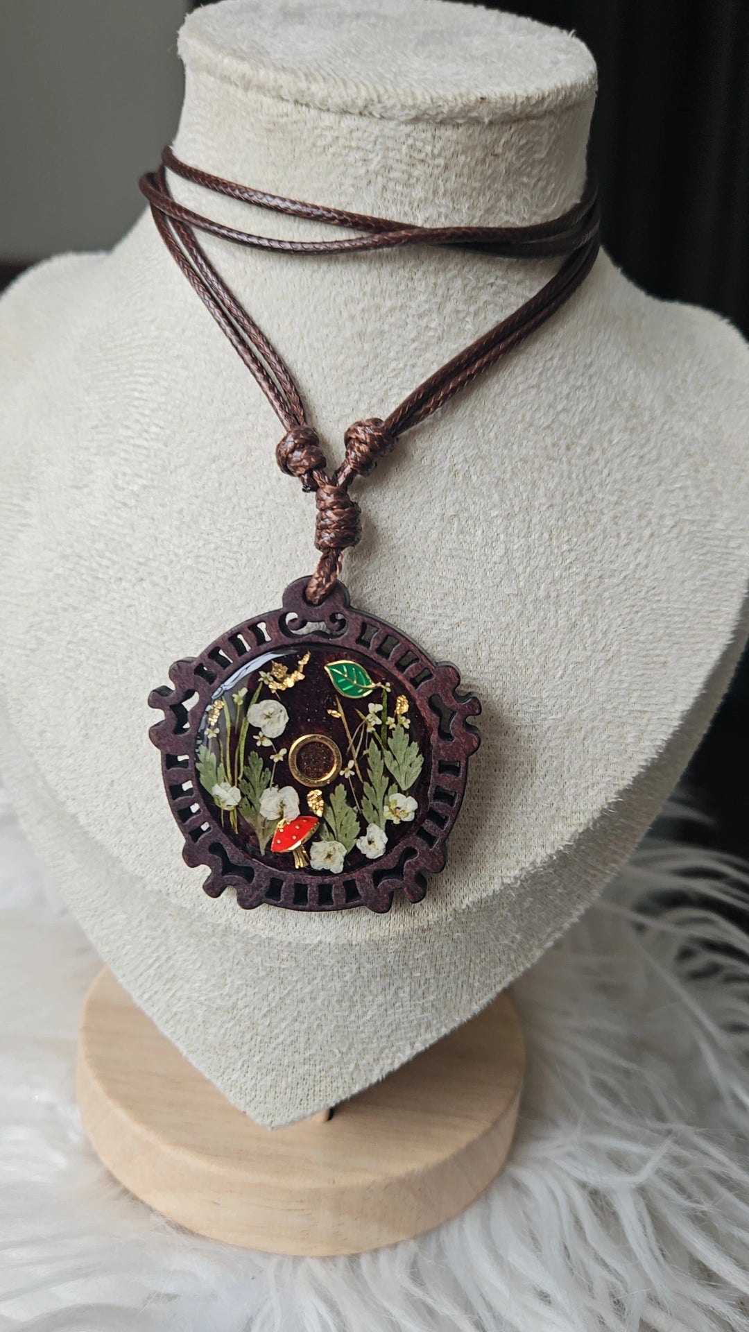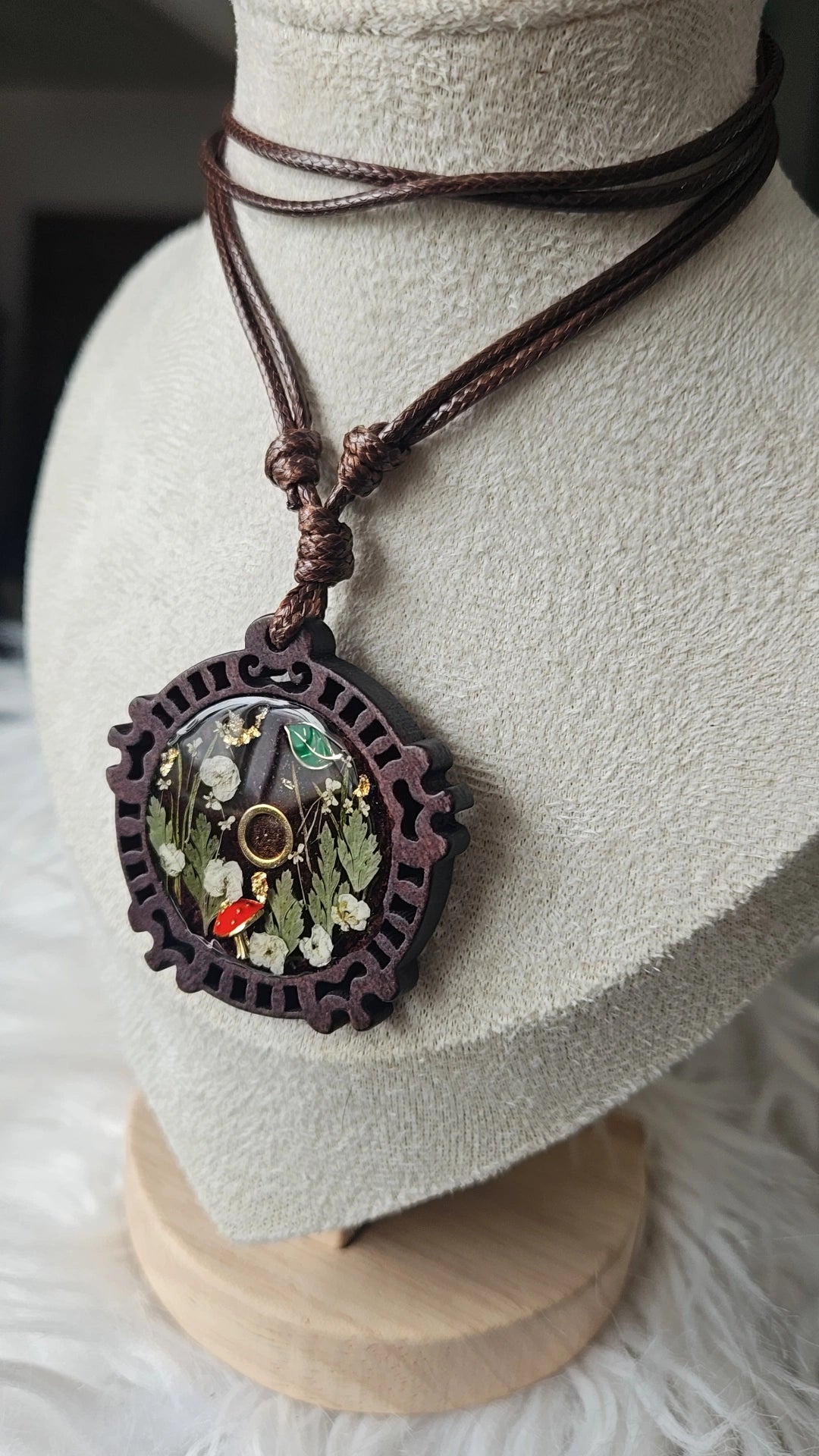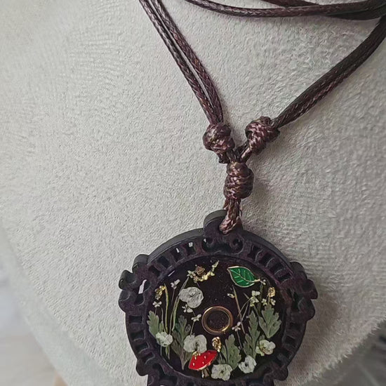 Made with real florals and botanicals and finished on a Walnut pendants with and adjustable faux leather necklace. A necklace even Gothmog couldn't resist 💅