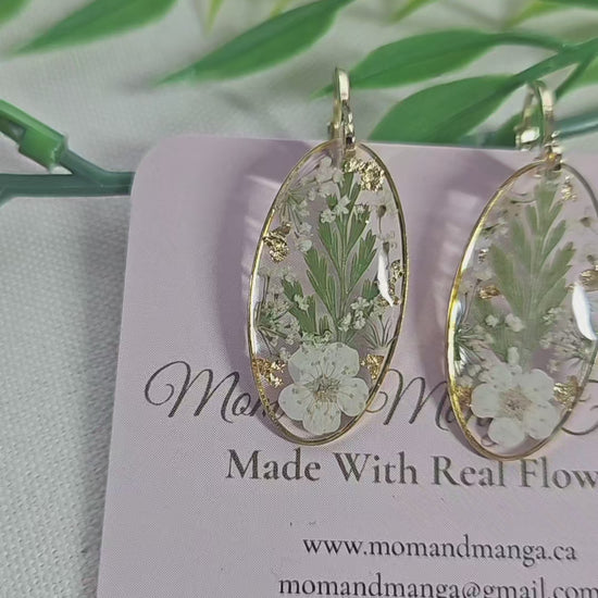Beautifully unique floral earrings. All botanicals are grown locally in Niagara. These earrings feature ferns, slyssum and Queen Anne's lace.