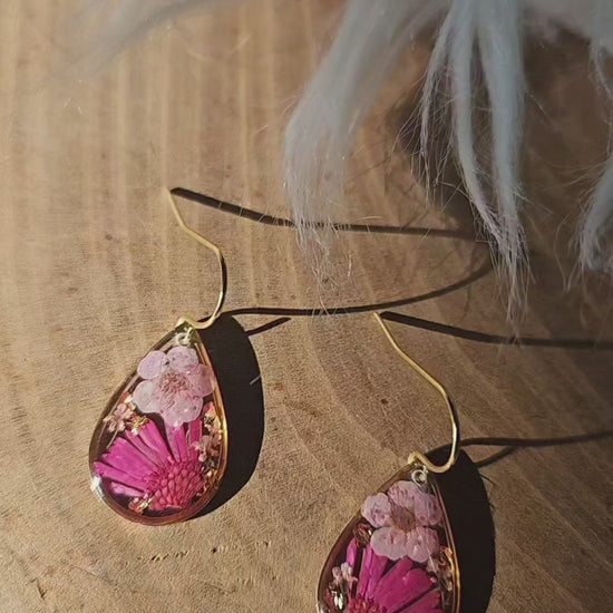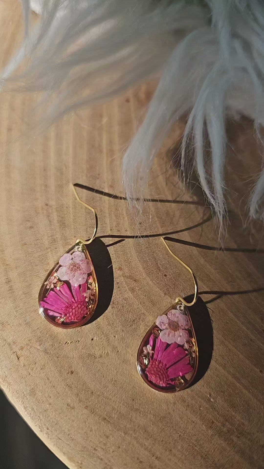 Featuring hints of gold leaf and finished with hypoallergenic 18k gold plated hooks.