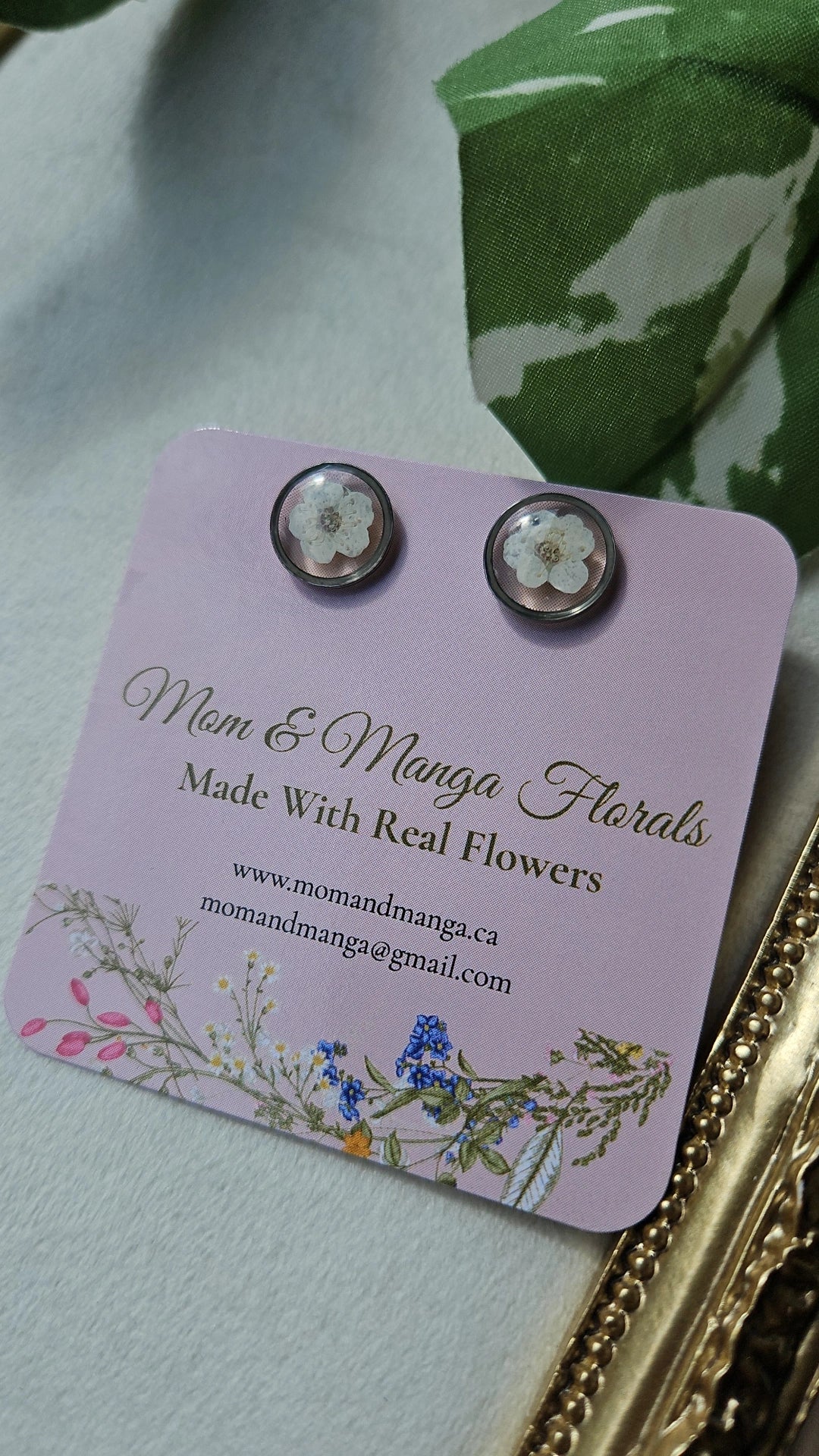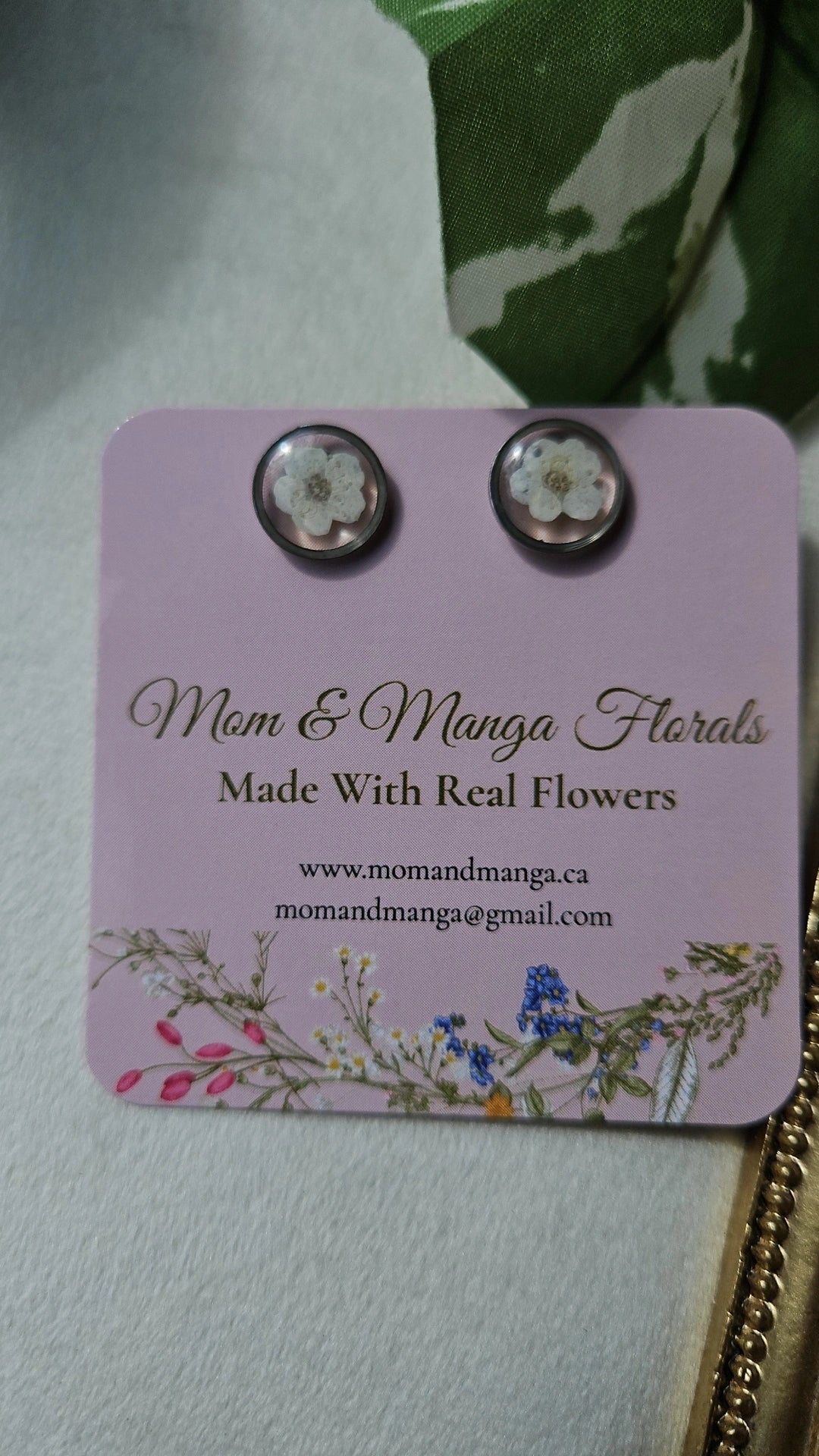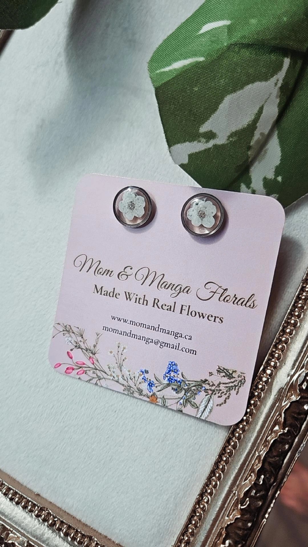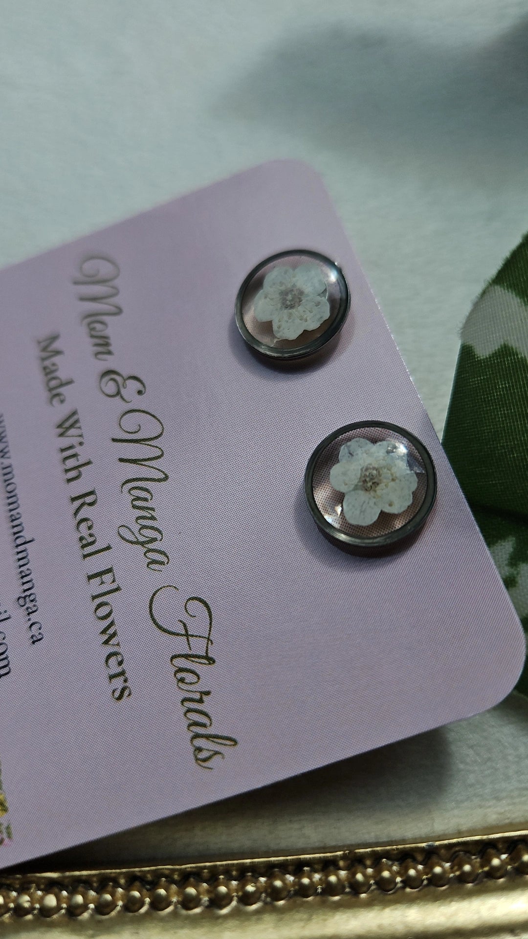 Classic white alyssum studs made with hypoallergenic stainless steel. Simple and elegant