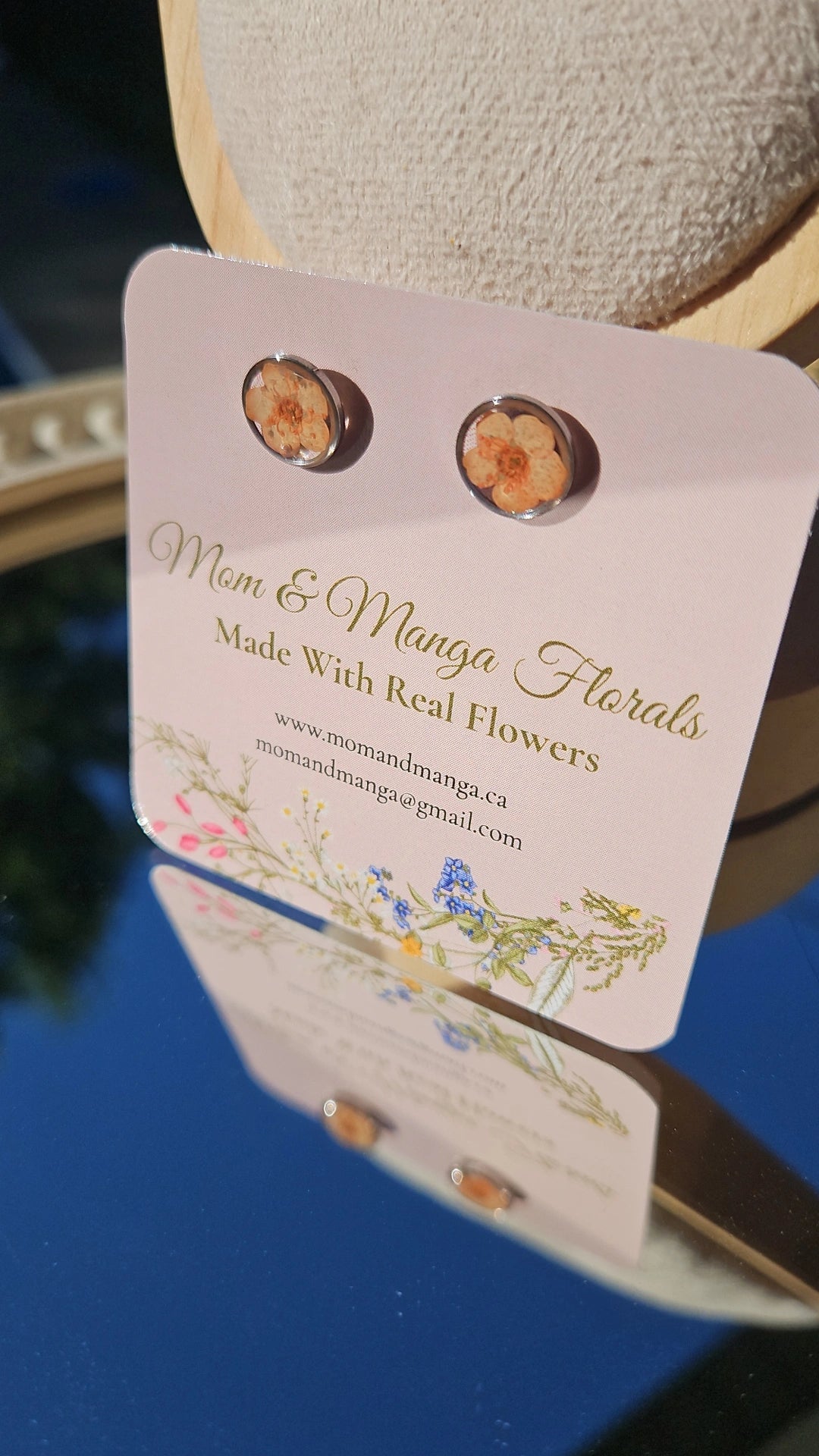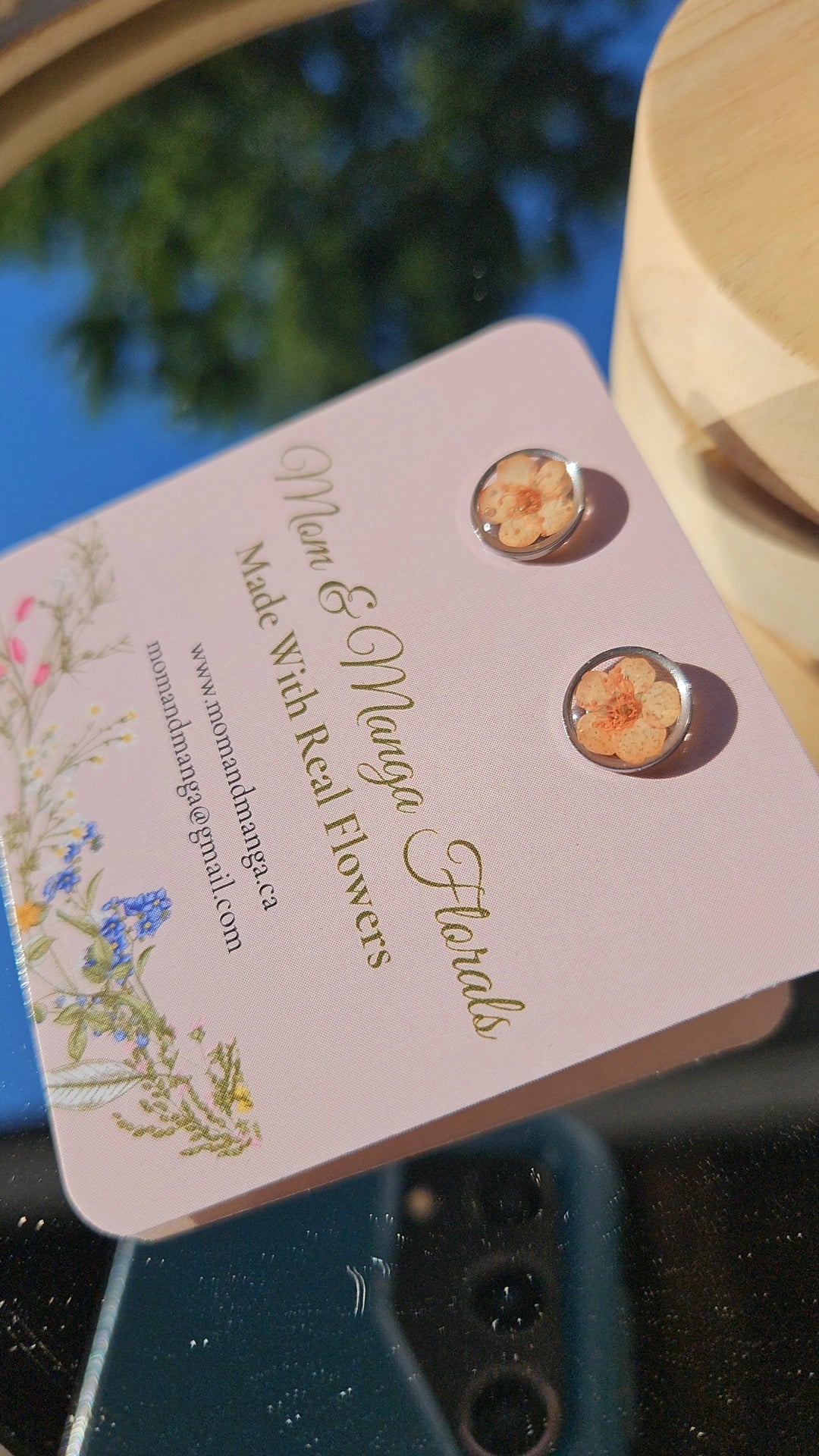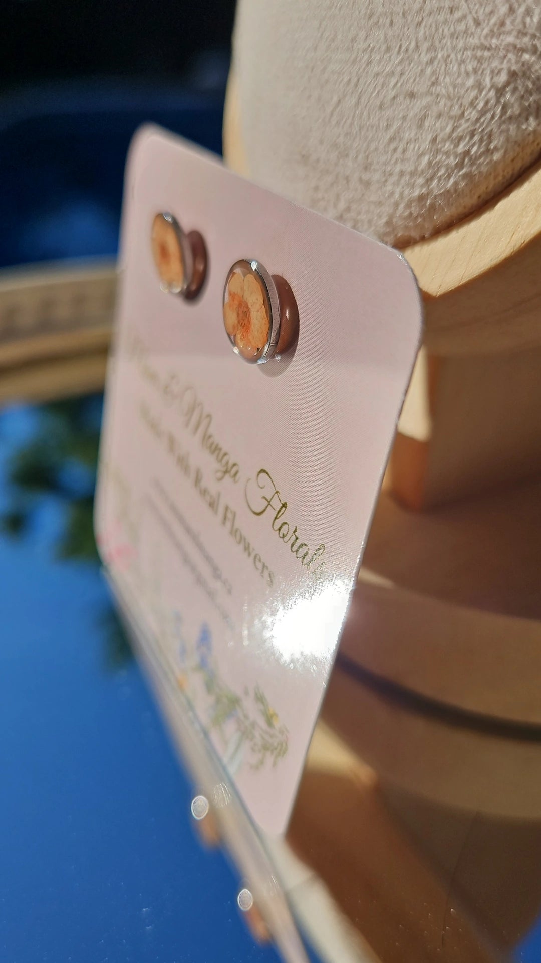 Simple and elegant orange floral stud. Hypoallergenic and perfect for every season