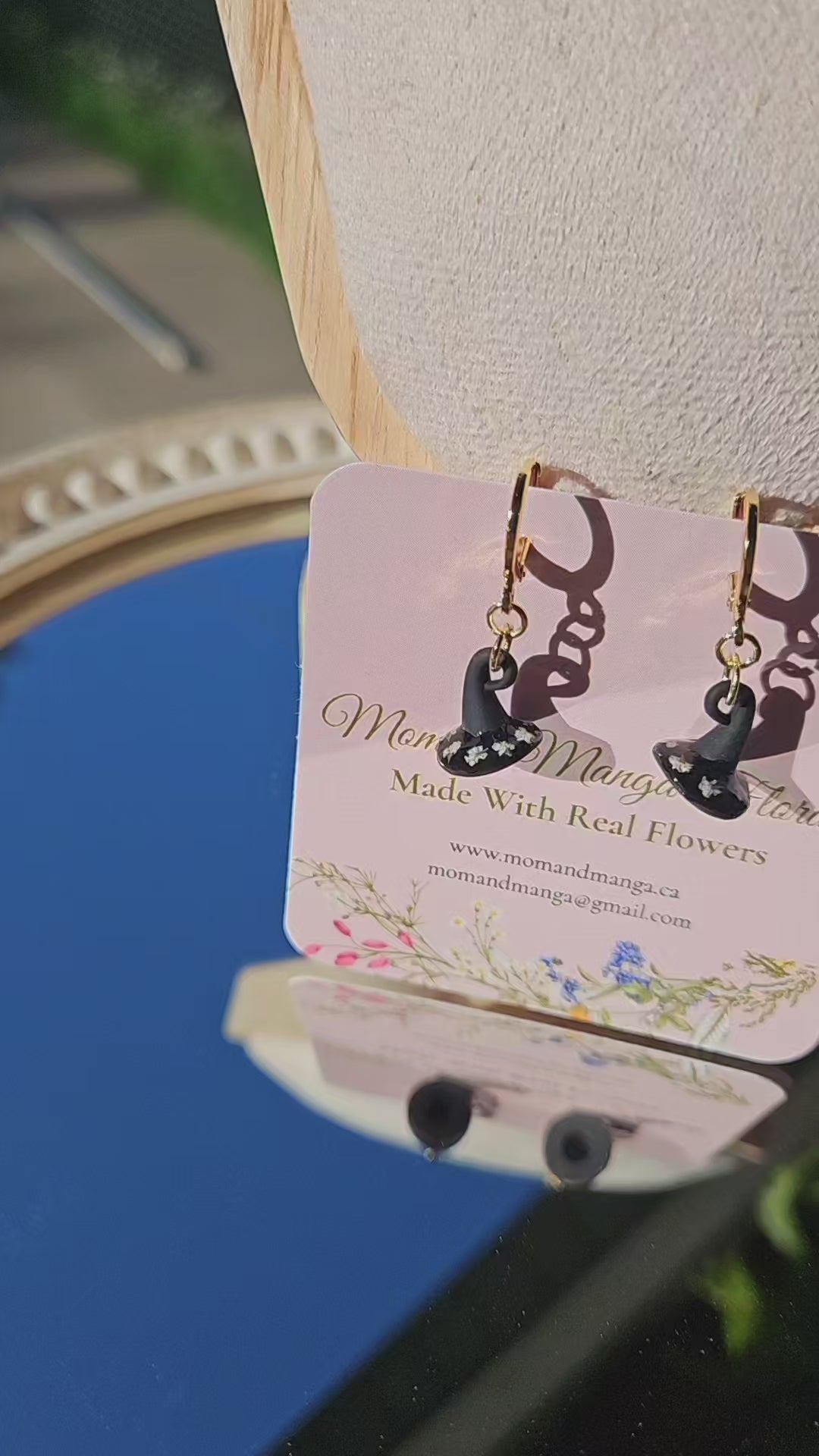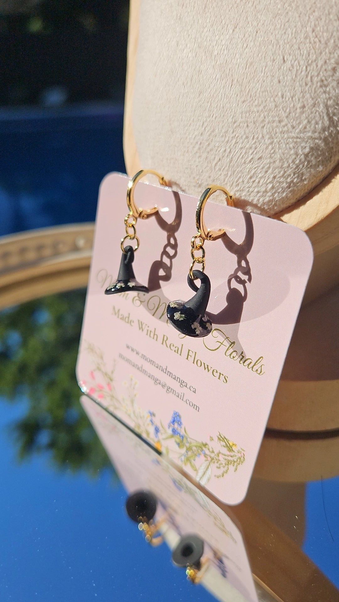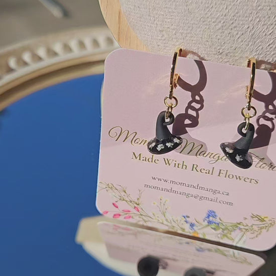 Delicate little Witchy Hats with dainty florals— the perfect mix of spooky and sweet. Made with hypoallergenic 18k gold plated stainless steel, they are light, comfortable, and made to wear all season long.